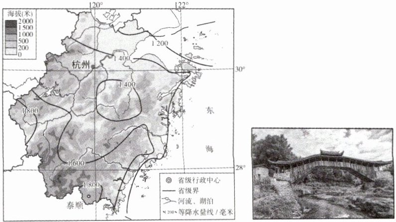 廊桥,泛指有廊屋的桥。浙江省温州市泰顺县有着“中国廊桥之乡”的美誉,境内遗存古廊桥32座。读泰顺县地理位置图及廊桥景观图,完成6~8题。
