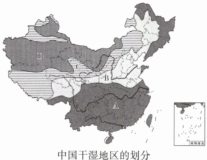 A 湿润地区 B 半湿润地区 C 半干旱地区 D 干旱地区