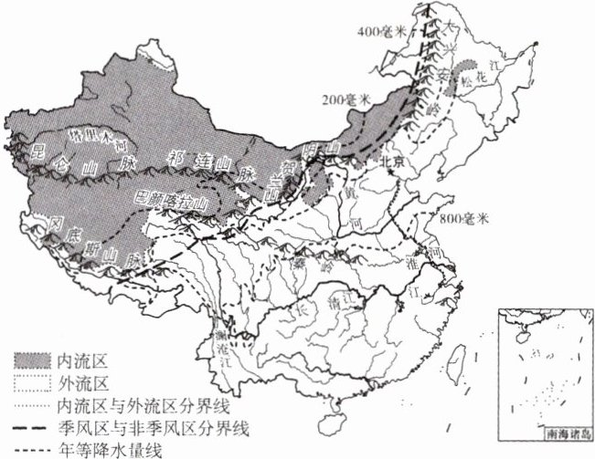河流“电子身份证”是指每块河长公示牌对应一个二维码。公众扫描二维码,可以看到河流的名称、长度、起点、终点等基本信息,目前已在我国多个地区普及。读我国内、外流区分布图,完成1~2题。