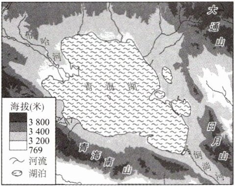 (黑白卷改编)青海湖是我国第一大咸水湖,其水体面积在2005—2024年连续20年扩大。读青海湖位置图,完成8~9题。