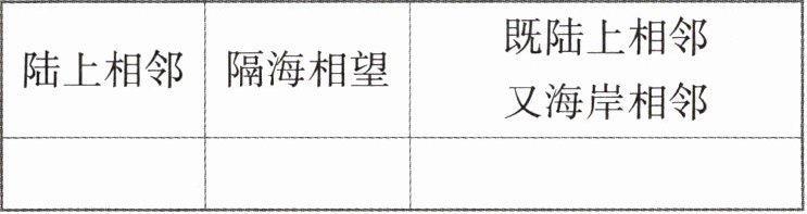 (2) 与我国陆上相邻、隔海相望的国家众多,请你各写出一个国家。(3分)