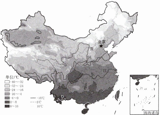 (定心卷改编)中央气象台发布预警信息:2025年2月6日起新一股强冷空气将影响我国,北方大部气温将下降6~8℃,部分地区可达10℃以上,并伴有大风、降水等。读全国最低气温预报图,完成3~4题。