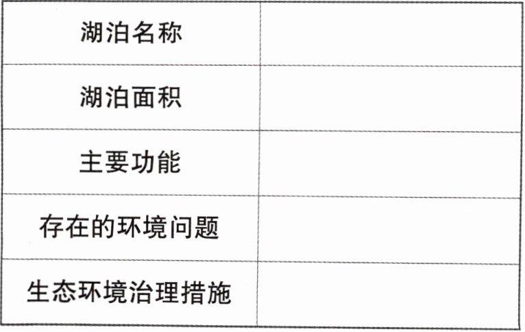 7. 社会调查和野外考察是学习地理的基本方法。请以家乡湖泊保护与治理为主题开展实践活动,完成下列调查表。