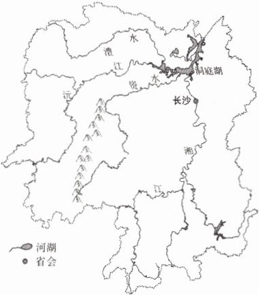 洞庭湖位于我国湖南省,是我国第二大淡水湖,南纳四水,北通长江,控楚带吴,地理位置优越。读洞庭湖位置示意图,完成1~2题。