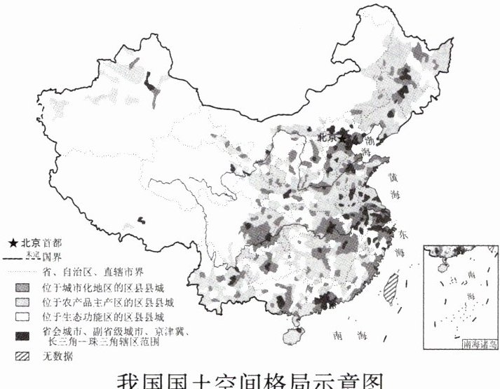 (1)从不同功能区来看,我国国土空间发展格局的分布特征是______。(1分)