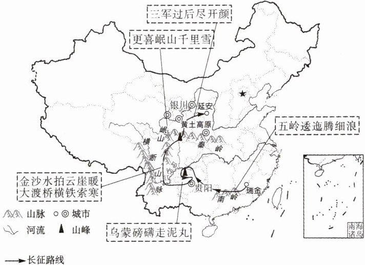 “红军不怕远征难,万水千山只等闲”。红军长征是为我国革命保存有生力量的战略大转移,期间历经无数艰难险阻,铸就了不朽的长征精神。读红军长征路线示意图,完成 8~10 题。