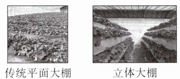 种植不用土,草莓种“空中”……在山东烟台福山区草莓采摘园,种草莓用上了高科技,先进的立体架式种植方式,搭配智能温室管控温度、湿度,亩产量达到传统土地种植的 3~5 倍。读草莓大棚示意图,完成 5~6 题。
