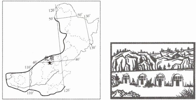 剪纸是中国民间流行的一种历史悠久的镂空艺术,是反映当地民众生产生活的镜子。读我国北方地区示意图及某地剪纸作品,完成1~2题。
