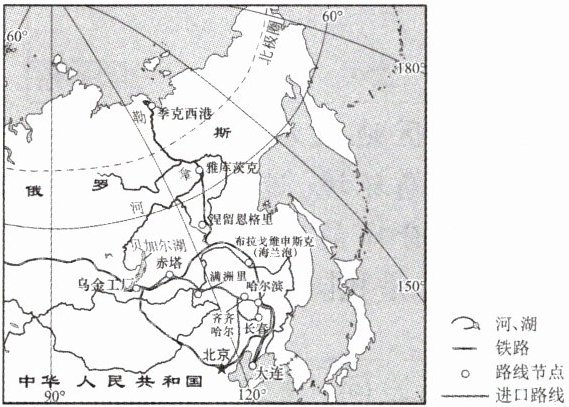 7. 进口的俄罗斯能源资源运往我国辽中南工业基地,沿途经过的铁路线有(