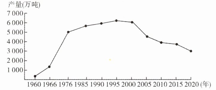 (1)概括大庆市石油产量及产业变化特征。(2分)