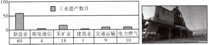 近年来,辽宁省积极推动工业转型和工业遗产保护再利用,将原有工业厂房、车间、机器等建设为博物馆、展览馆、文化空间等,使得工业“锈带”变“秀场”。读辽宁省工业遗产产业部门结构表及某地工业遗产景观图,完成11~12题。