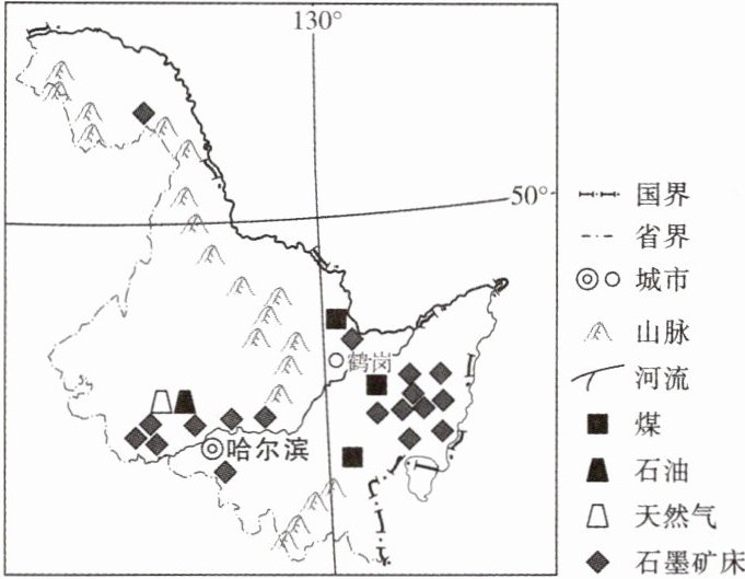 (中考新题型·主题探究)(核心素养:人地协调观)以盛产煤炭而闻名的黑龙江省鹤岗市,石墨资源丰富,“资源型城市走出一条优势充分释放的振兴发展之路”是老煤城的新希望,也是新征程中的新挑战。读鹤岗位置示意图,完成下列探究。(11分)
