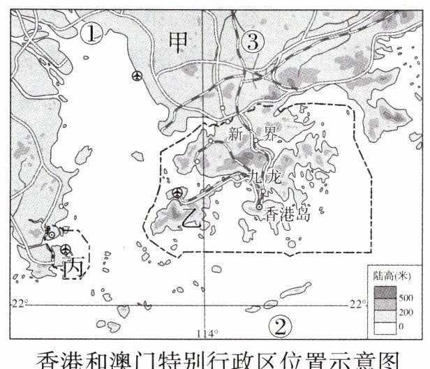 (1)甲广东省 乙香港特别行政区 丙澳门特别行政区