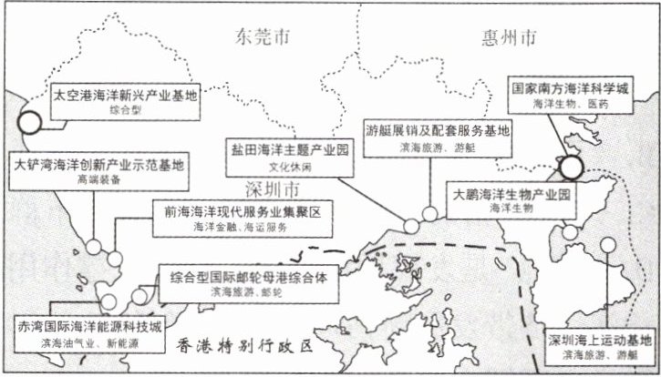 《深圳市海洋发展规划(2023—2035年)》,提出了全球海洋中心城市建设的“深圳方案”。读深圳市海洋产业分布图,完成9-10题。