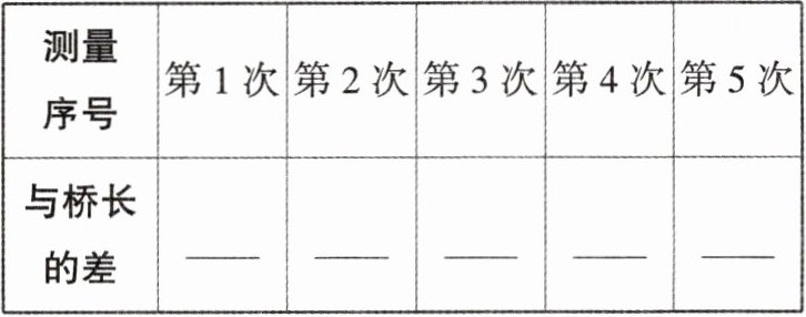 (1)测量序号 第1次 第2次 第3次 第4次 第5次 与桥长的差 +0.4 -0.2 +0.2 -0.1 -0.3
