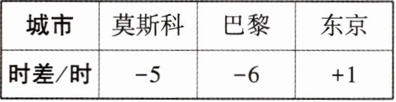 8. (教材例4题改编)如下表是9月份全球几个城市与北京的时差.(带正号的表示同一时刻比北京时间快的时数,带负号的表示同一时刻比北京时间慢的时数)