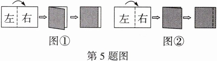5. (教材图改编)把一张长方形纸片按图①的方式进行折叠,使折痕的左侧部分比右侧部分短2 cm,展开后按图②的方式再折叠一次,使第二次折痕的左侧部分比右侧部分长2 cm,再展开,则纸上形成的两条折痕之间的距离为______