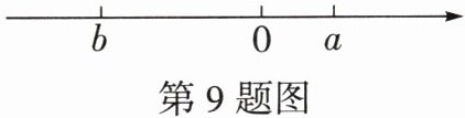 9. (教材习题第8题改编)已知 $a,b$ 两数在数轴上对应的点如图所示,则 $ab$