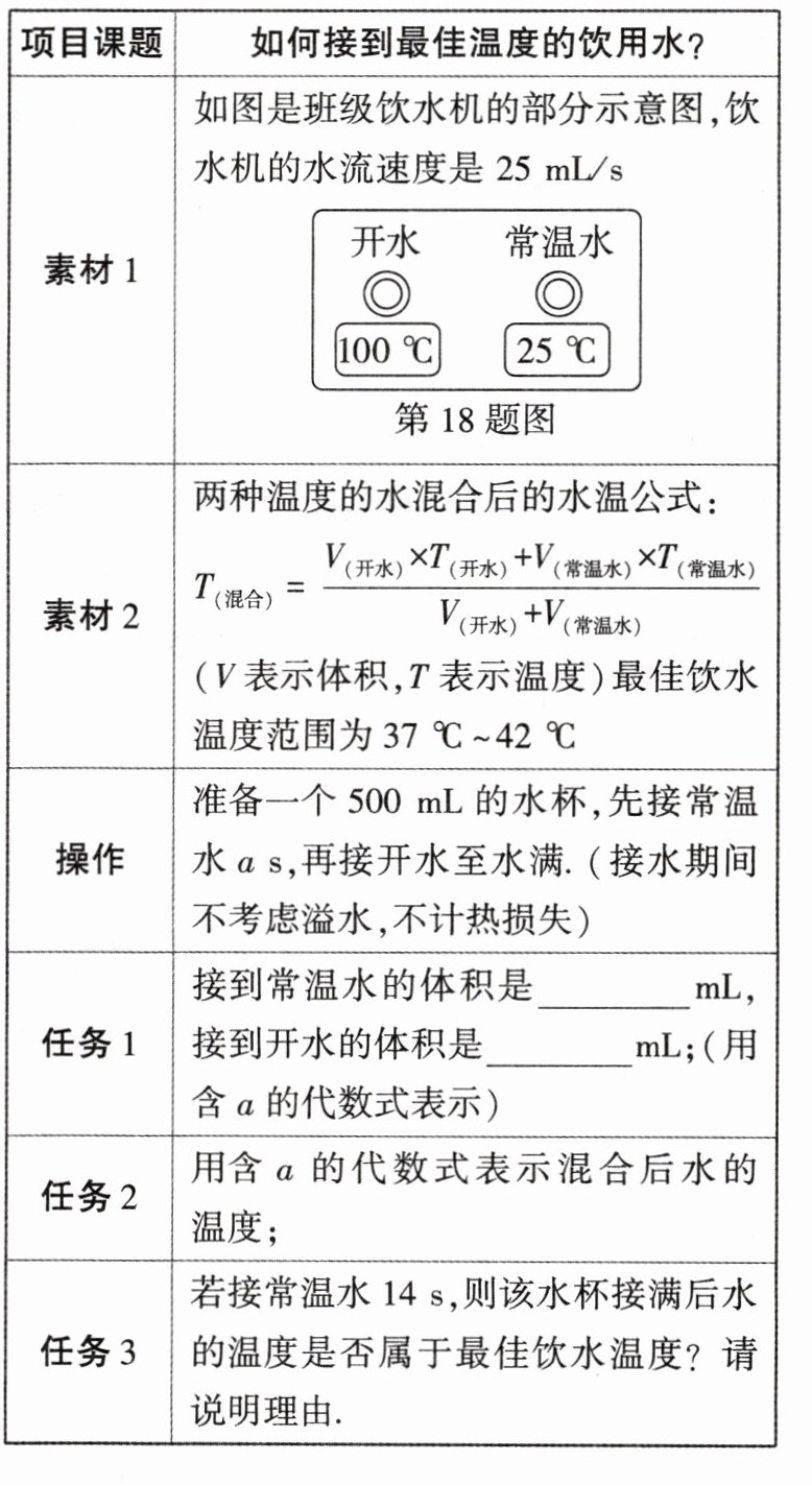 任务2:解:由题意得,$T_{(混合)}=\frac{(500 - 25a)×100 + 25a×25}{500}$