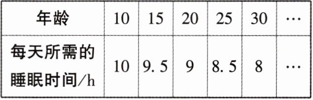 (1)观察表格数据,年龄每增加5岁,睡眠时间减少0.5小时。