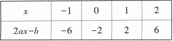 8. 整式 $ 2ax - b $ 的值随 $ x $ 的取值不同而不同,下表是当 $ x $ 取不同值时对应的整式的值.