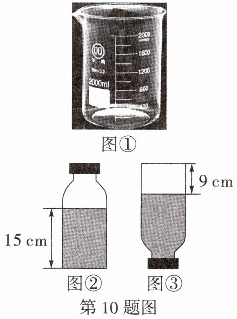 步骤三:将玻璃瓶倒放,此时瓶内空余部分的高度为9cm(如图③)。