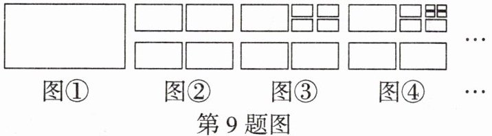 9. (教材习题第13题改编)如图,将图①中的长方形剪开得到图②,图②中有4个长方形;将图②中的一个长方形剪开得到图③,图③中有7个长方形;将图③中的一个长方形剪开得到图④,图④中有10个长方形,请你根据这个裁剪规律,回答下列问题: