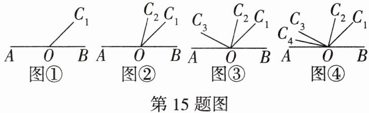 (3)张同学提出以下猜想:若将图中射线改为直线$OC_{1},OC_{2},OC_{3},OC_{4}$,则每个图中比平角小的角的个数都变为原来的两倍.请验证张同学的猜想是否正确,并说明理由.