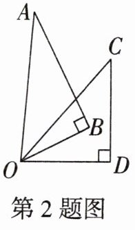 2. 将一副三角板AOB,COD按如图所示的方式放置,其中$∠AOB= 60^{\circ },∠COD= 45^{\circ }$,若三角板AOB绕点O顺时针旋转(OB始终在$∠COD$内部).在旋转过程中,当$∠BOC的度数与∠BOD$的度数是2倍关系时,$∠AOD$的度数为____.