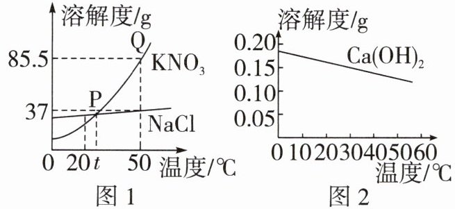 (2)20℃时,NaCl和$KNO_3$的溶解度大小关系为