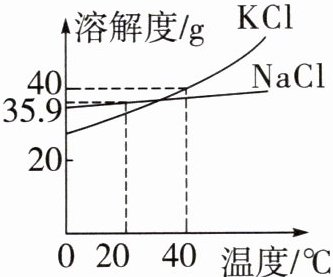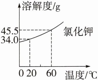 1. 劳育 农业生产活动 小华参加农业实践活动时,在室温下(20℃)配制溶质质量分数为10%的KCl溶液用于作物无土栽培,KCl的溶解度曲线如图所示(水的密度以$1g·mL⁻^1$计)。下列说法正确的是 (