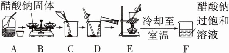(填“能”或“不能”)配制出醋酸钠的过饱和溶液。(3)操作F中,将醋酸钠溶液冷却至室温的过程中,溶液的溶质质量分数