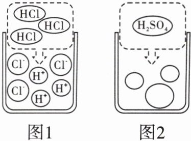 8. 如图是盐酸和硫酸溶于水时的微观示意图。