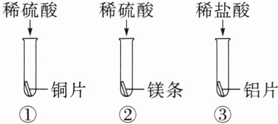 2Al + 6HCl = 2AlCl₃ + 3H₂↑(或Mg + H₂SO₄ = MgSO₄ + H₂↑)