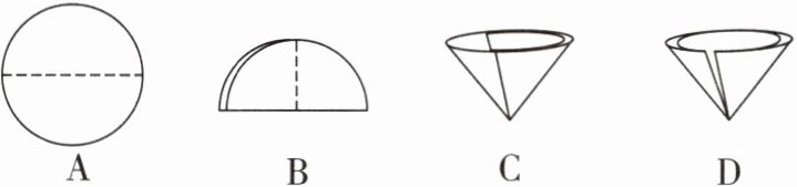 2. (教材图片改编)在过滤操作中需要将圆形滤纸折叠处理,下列不该出现的折叠情境是 (