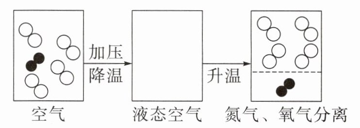 (1)工业制取氧气:将空气加压、降温变成液态空气,再根据氮气和氧气沸点的不同,将液态空气升温后得到氧气。