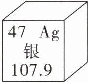 (4)银原子的相对原子质量是107.9(合理即可)[解析]原子序数=核电荷数=质子数=核外电子数↑原子序数$\boxed{\begin{array}{c}47\quad Ag\\ 银\\ 107.9\end{array}}$元素符号元素名称,带金字旁,属于金属元素相对原子质量