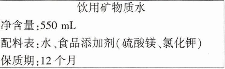 8. (教材习题改编)如图是某饮用矿物质水的标签,请用正确的化学用语填空: