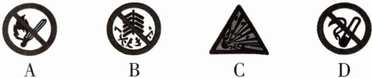 6. (教材图片改编)在储存易燃物和易爆物时,经常会张贴一些标志提醒大家注意安全,下列张贴的标志中表示禁止烟火的是 (