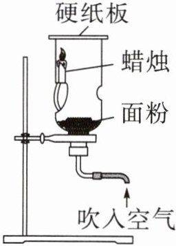 8. (教材观察思考改编)粉尘爆炸的实验装置如图所示。用打气筒向容器内打气吹散面粉,瞬间发生爆炸,硬纸板被冲飞,蜡烛熄灭。