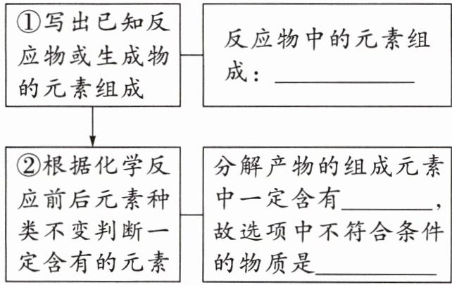 ②根据化学反应前后元素种类不变判断一定含有的元素 分解产物的组成元素中一定含有