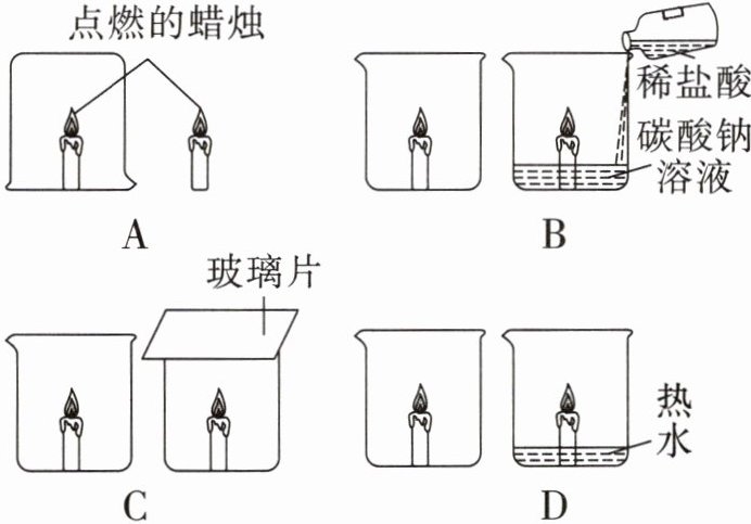 1. 同学们利用蜡烛设计实验证明可燃物燃烧需要与氧气接触,下列实验设计不能达到此目的的是 (