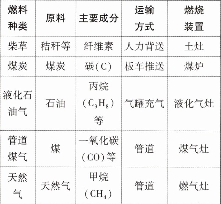 4. (黑白卷改编)同学们在调查家用燃料的变迁时发现家用燃料经历了柴草→煤→液化石油气→天然气的变迁。
