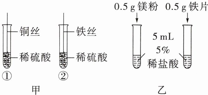 。(4)同学们设计乙实验来比较镁:铁分别与稀盐酸反应:的快慢,观察到镁粉表面迅速产生气泡,反应的化学方程式为_