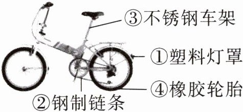 4. 生活中金属制品随处可见,如图是一款共享单车的构造图。