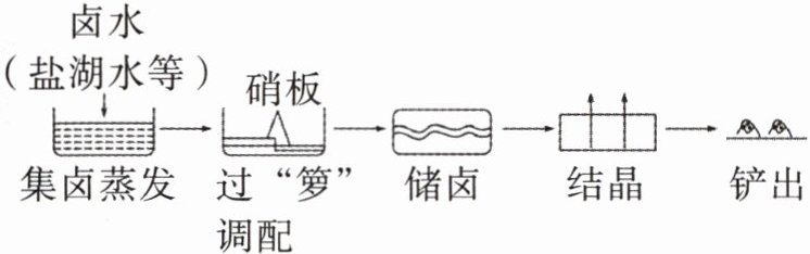 14. 山西运城盐湖古代采用的“五步产盐法”,又名“垦畦浇晒”产盐法,其主要过程如图,分析生产过程,回答下列问题: