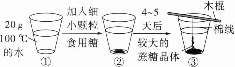 某同学周末打算在家用细小颗粒食用糖自制较大的蔗糖晶体,制作过程如图所示。请完成第7~8题。