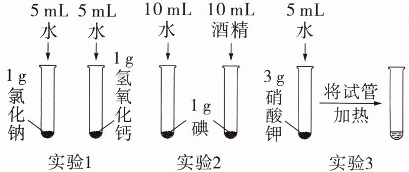 (2)实验2中碘较难溶于水,易溶于酒精,说明同一种物质在不同溶剂中的溶解性