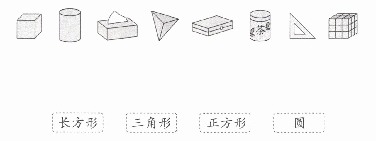 一、下面的物品中分别藏着什么图形?连一连。
