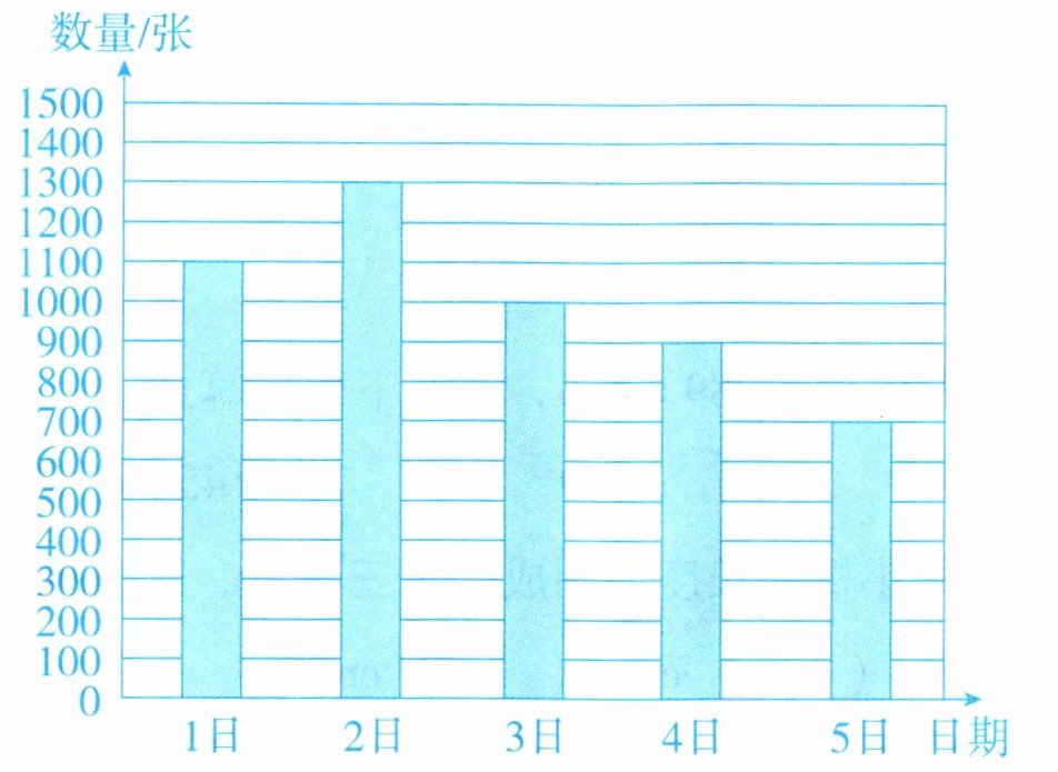 由图可知,$1$日售出门票$1100$张,$2$日售出门票$1300$张,$3$日售出门票$1000$张,$4$日售出门票$900$张,$5$日售出门票$700$张。